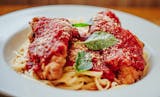 Sauteed chicken tenders, onions, roasted peppers, sauce, and mozzarella cheese.